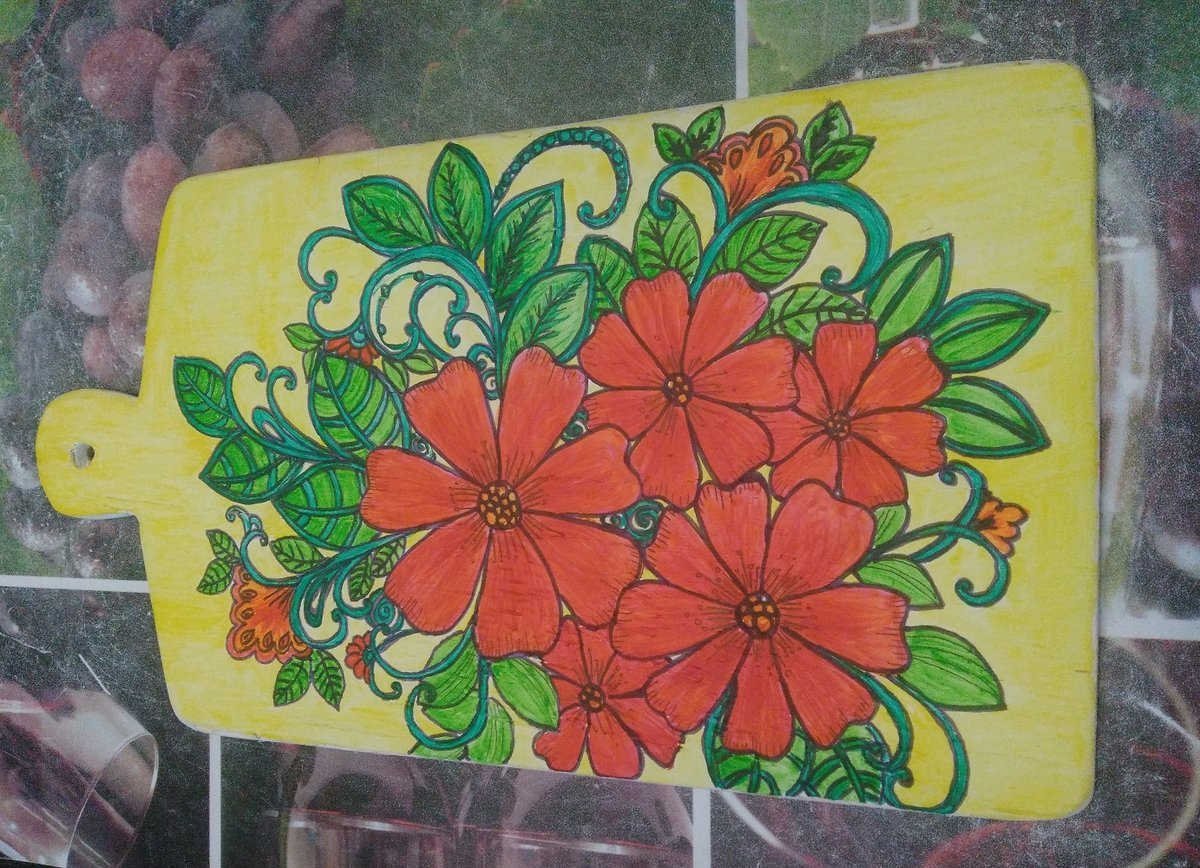 ![Роспись доски цветы]()