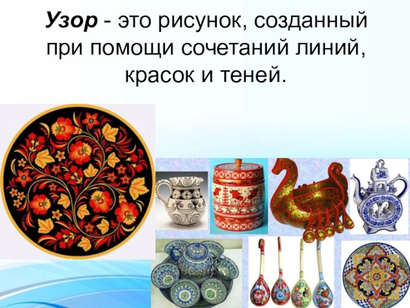 Узор это рисунок созданный при помощи сочетаний линий красок и теней