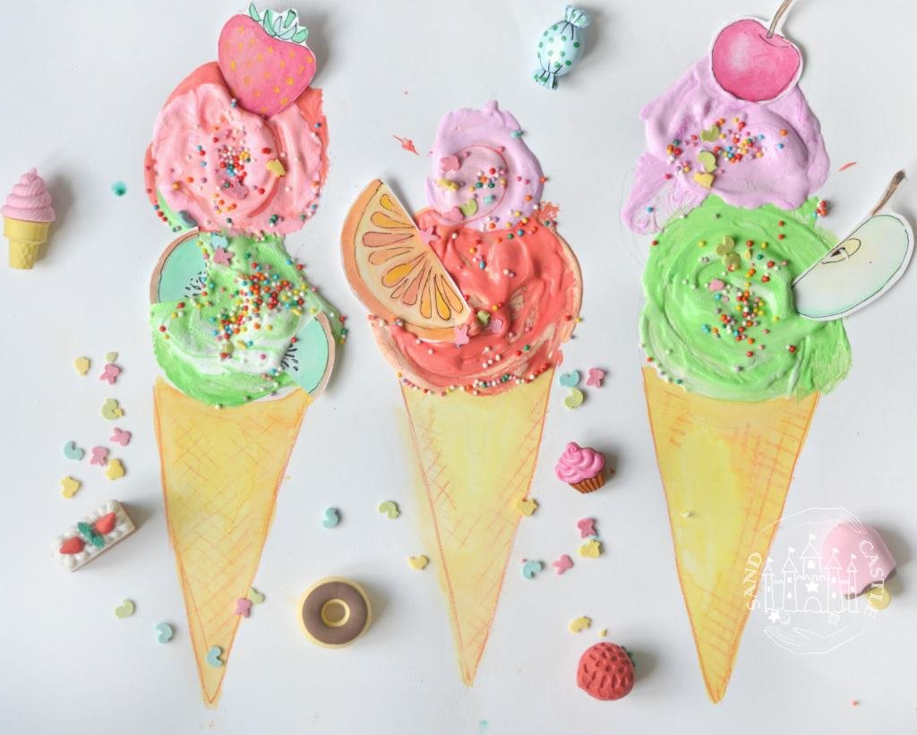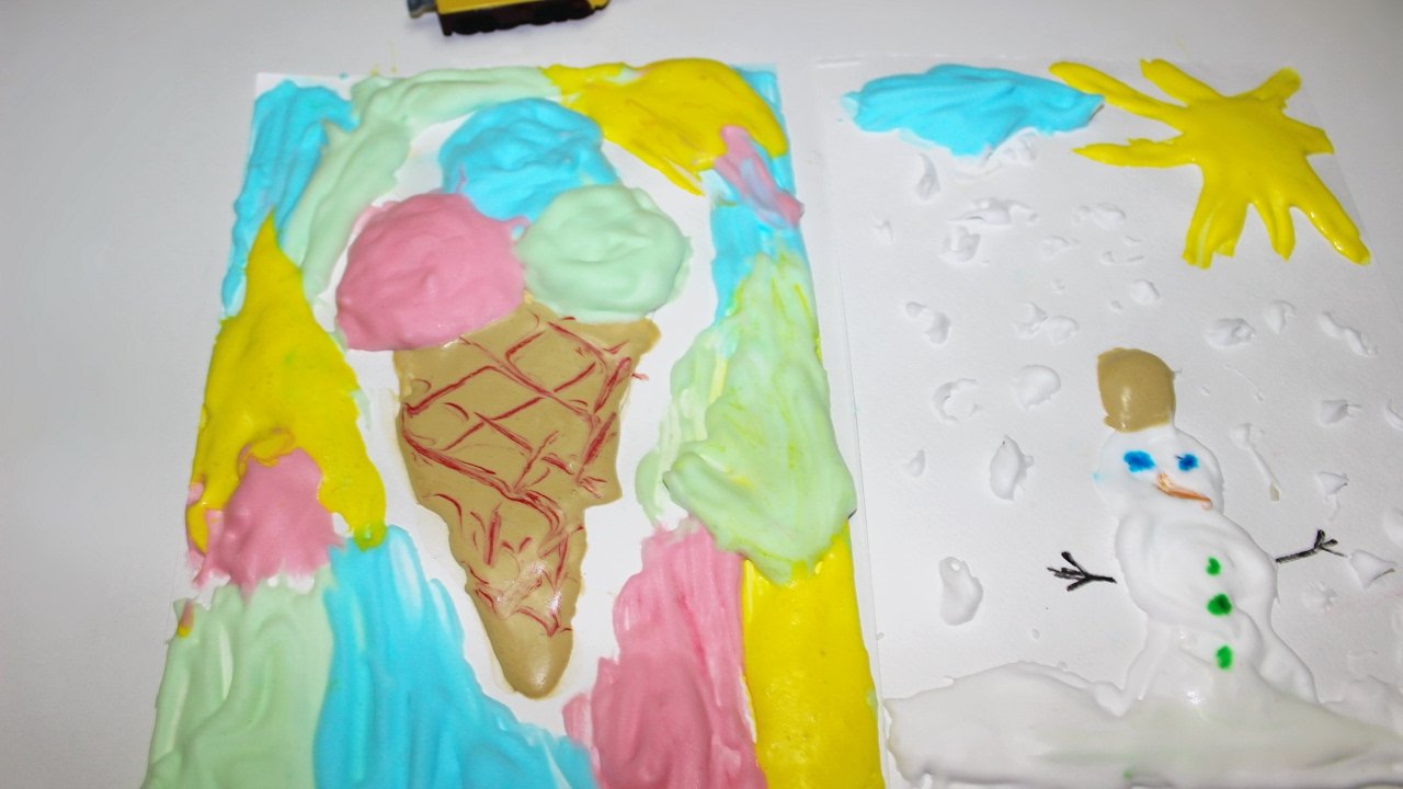 ![Рисование красками из пены для бритья и клея ПВА]()