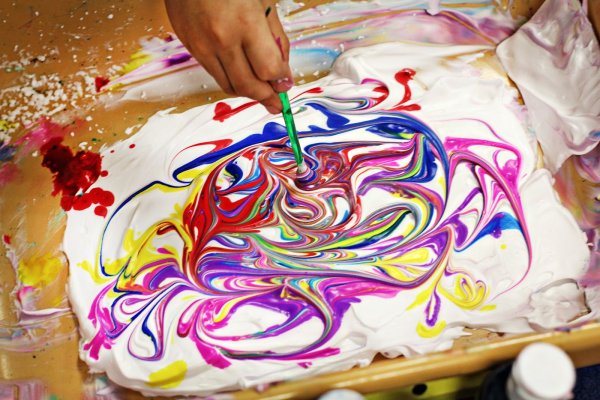 Рисование красками из пены для бритья и клея ПВА