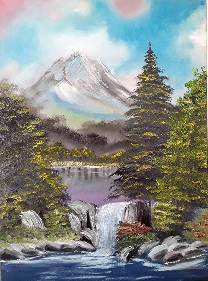 ![Водопады живопись акрил]()