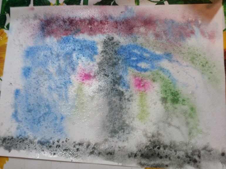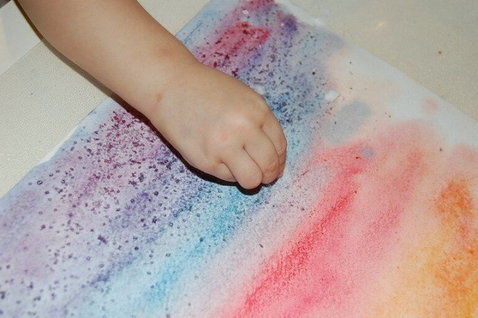 Рисование с солью и акварелью для детей