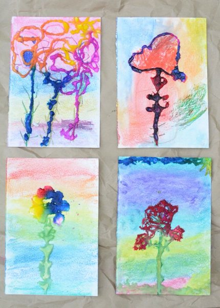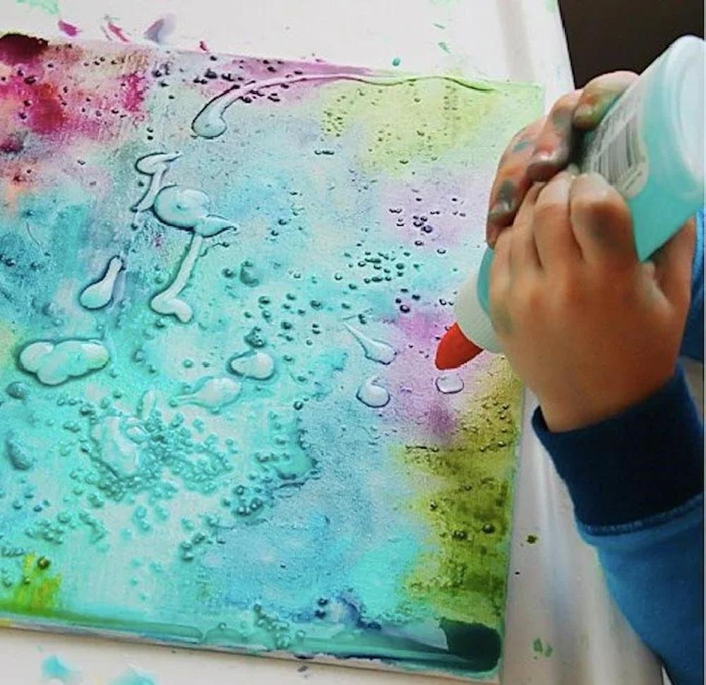 Рисование клеем и акварелью