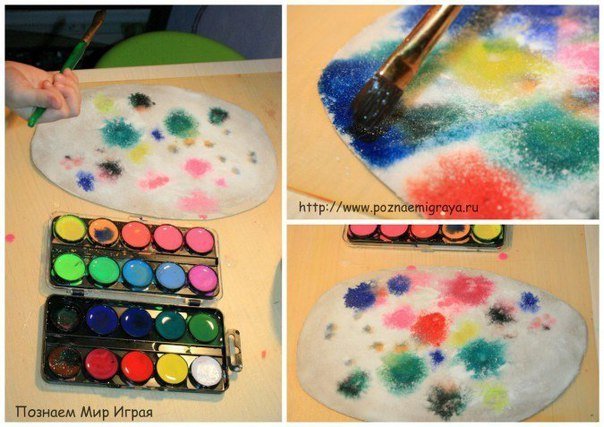 ![Рисование на соли красками]()
