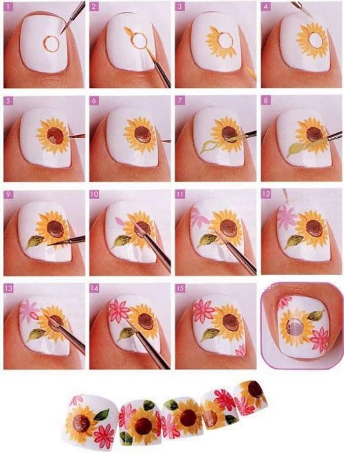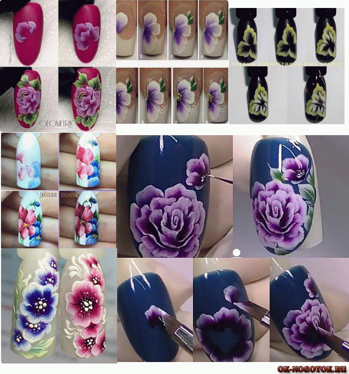 ![Рисование цветов на ногтях пошагово]()