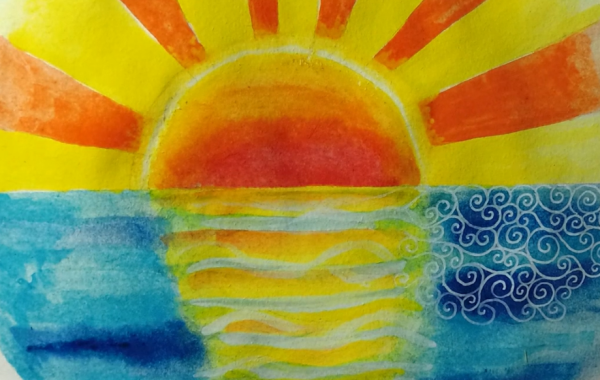 Закат красками для детей