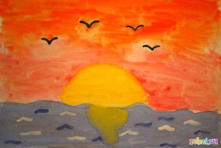 ![Рисование заката для детей]()
