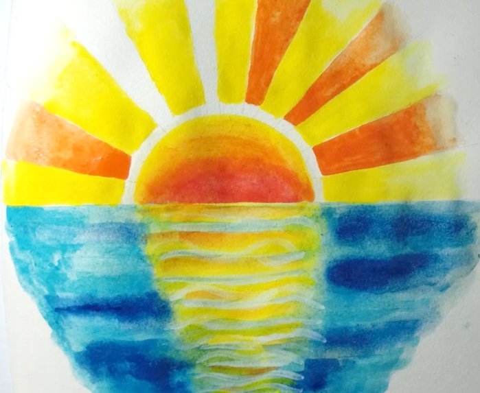 ![Закат на море красками для детей]()