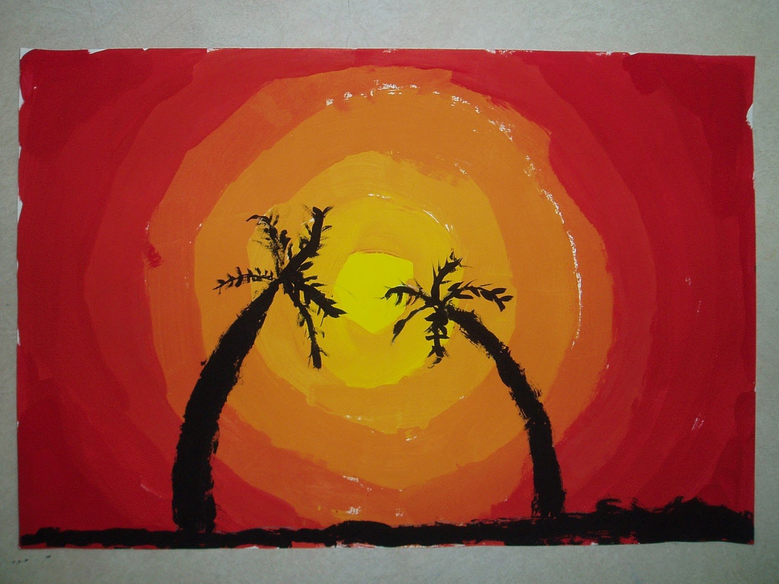 Закат солнца гуашью