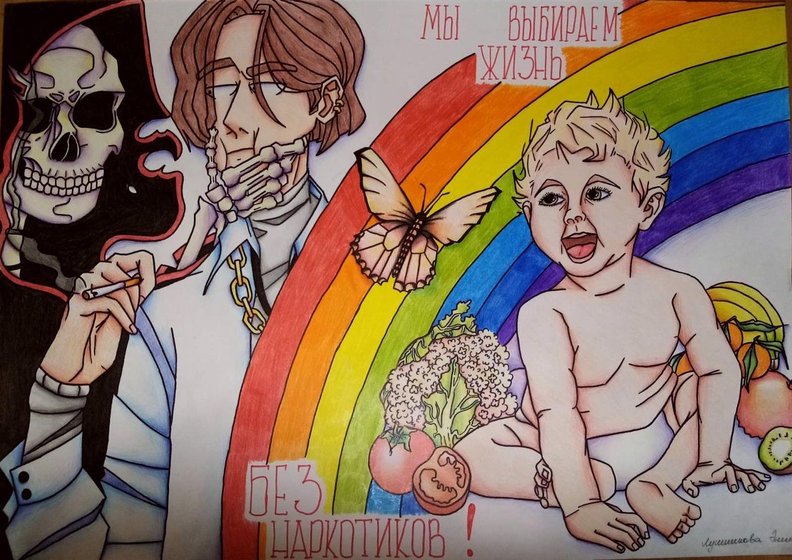 ![Рисунок мы против наркотиков]()