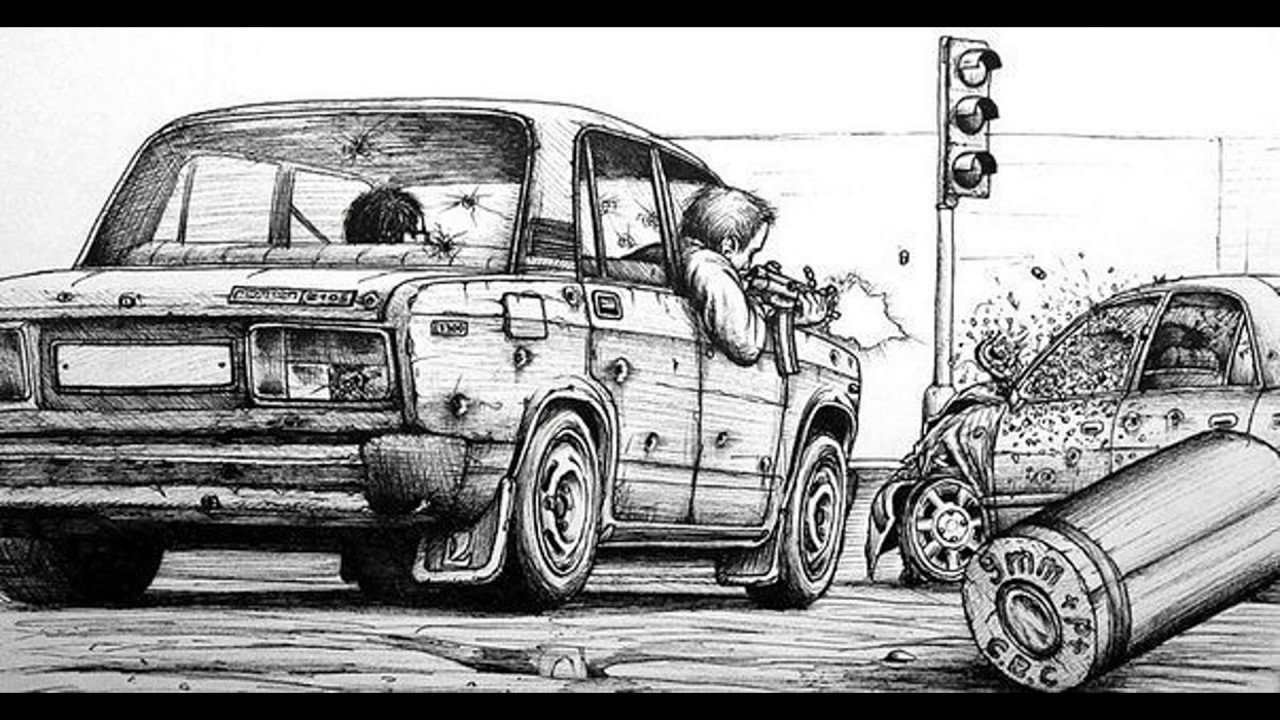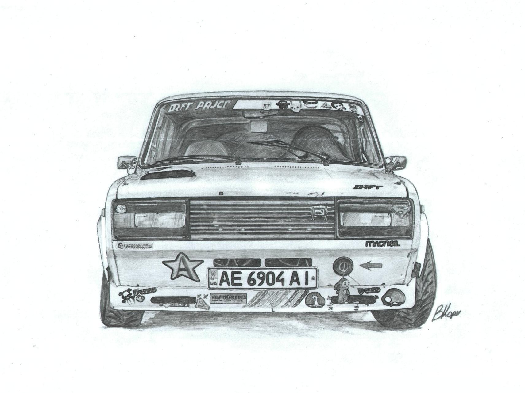 ![ВАЗ 2107 рисунок карандашом сбоку]()