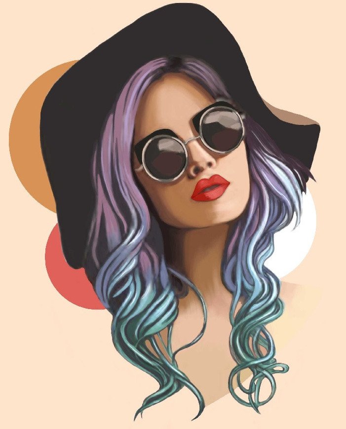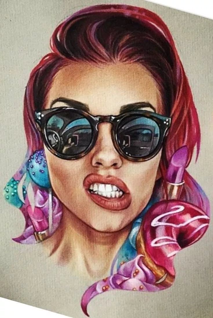 ![Нарисованная девушка в очках]()