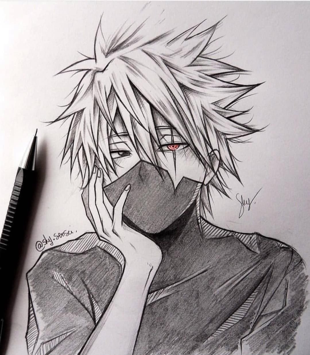 ![Рисунки аниме карандашом для срисовки мальчики]()
