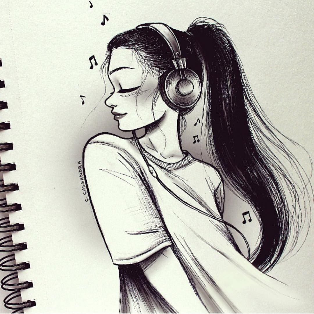 ![Девушка в наушниках рисунок]()
