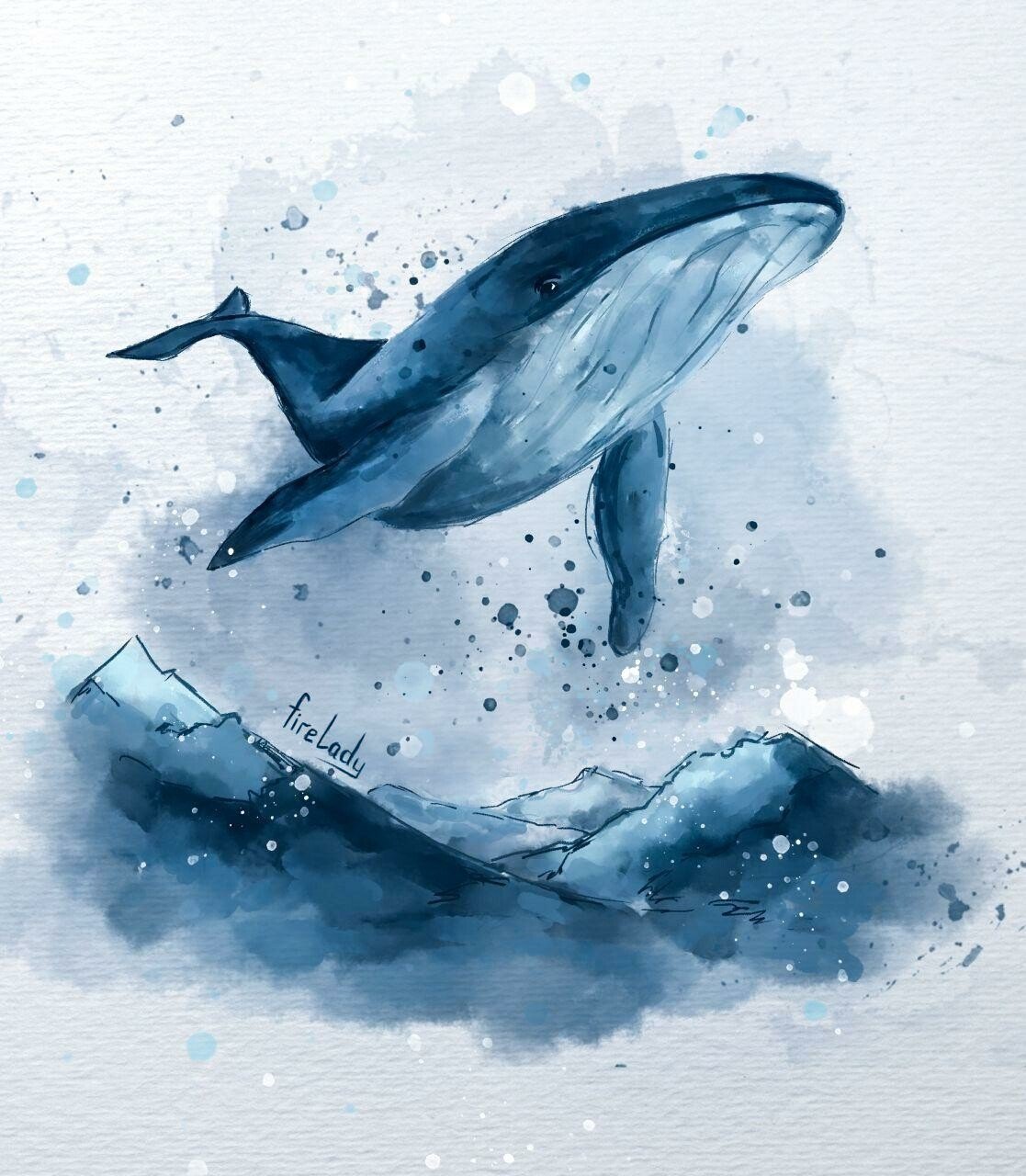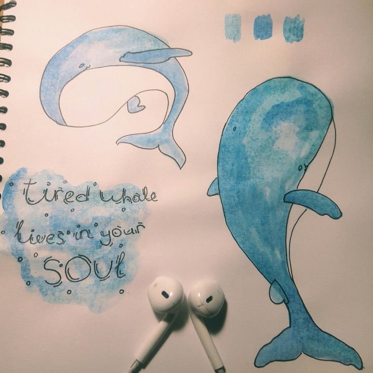 ![Рисунки китов акварелью]()