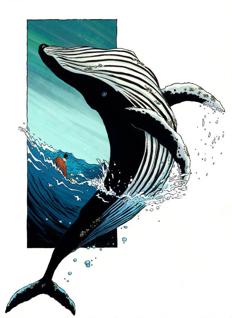 ![Кит выпрыгивает из воды арт]()