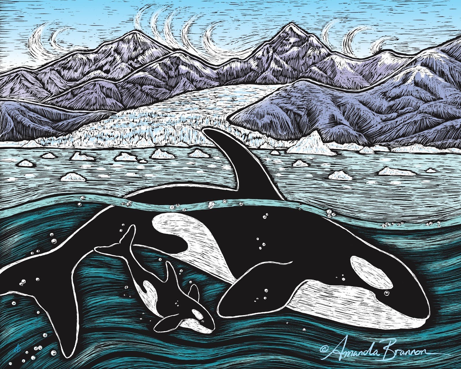 Кит Касатка акварелью