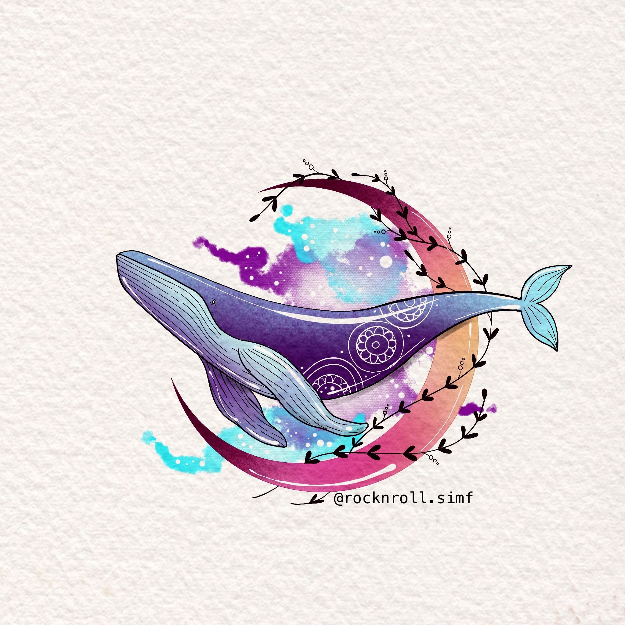 ![Кит скетч акварелью]()