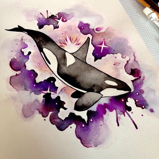 ![Кит Касатка акварелью]()