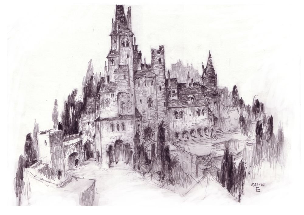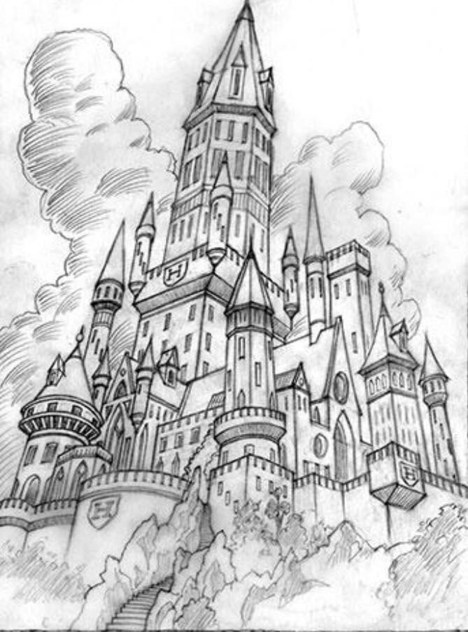 ![Раскраска Гарри Поттер замок Хогвартс]()
