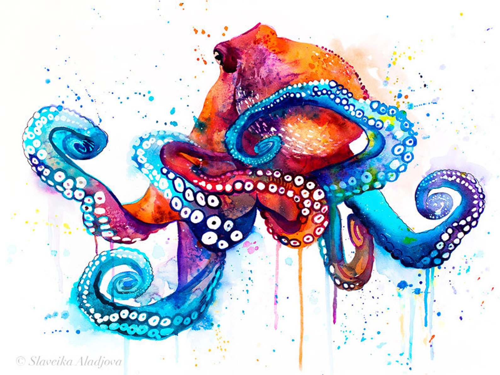 ![Осьминог акварель]()