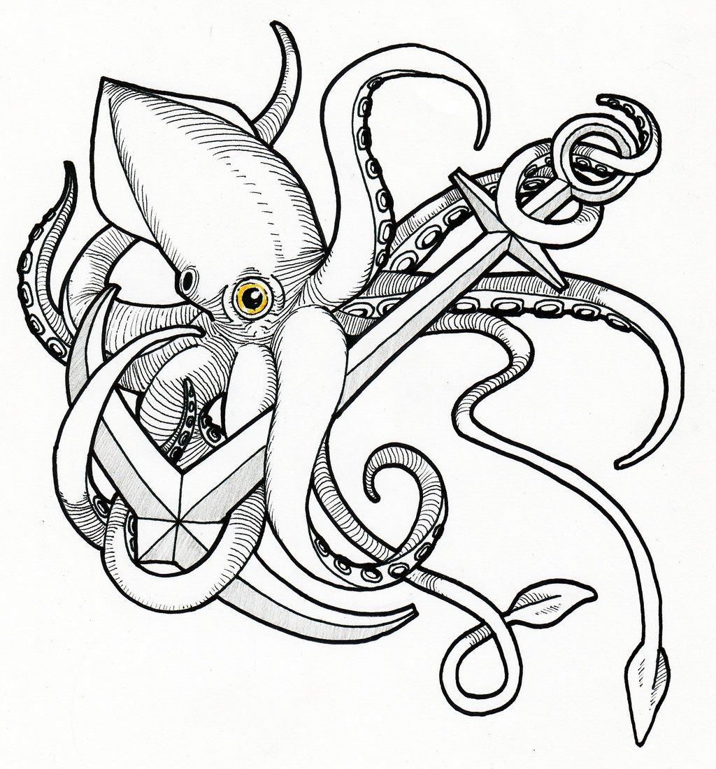 Осьминог тату эскиз