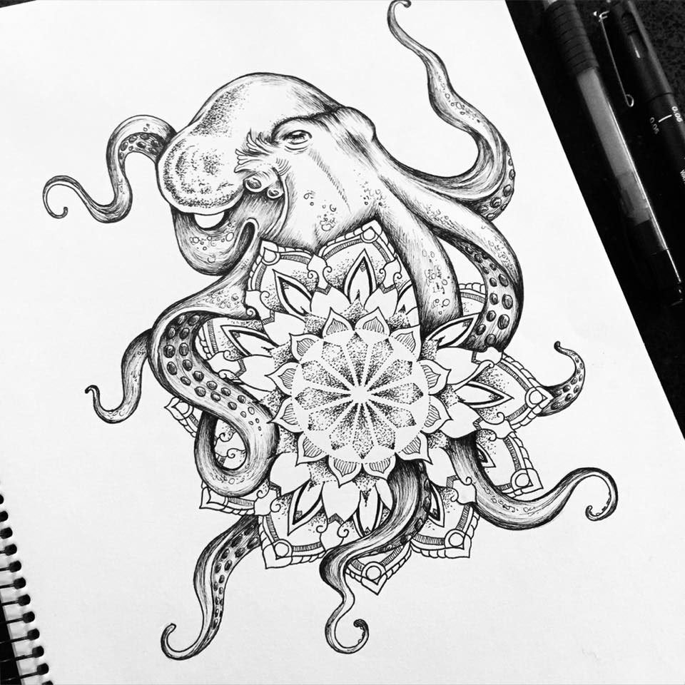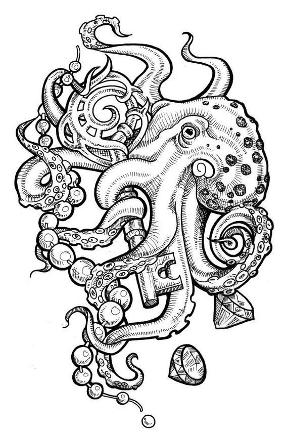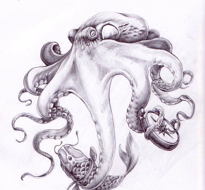 ![Осьминог тату эскиз]()