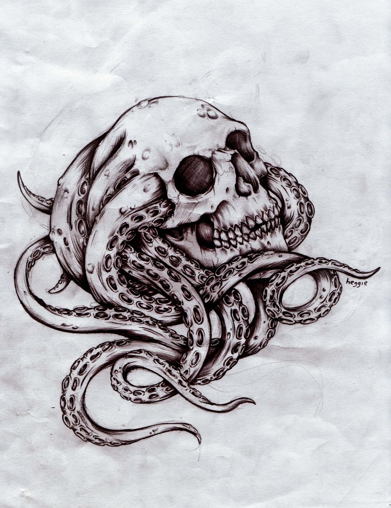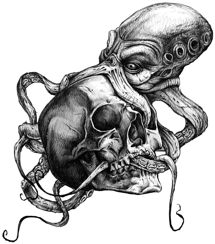 ![Эскиз череп осьминог]()