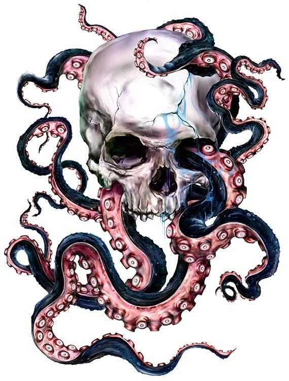 ![Тату осьминог с черепом]()
