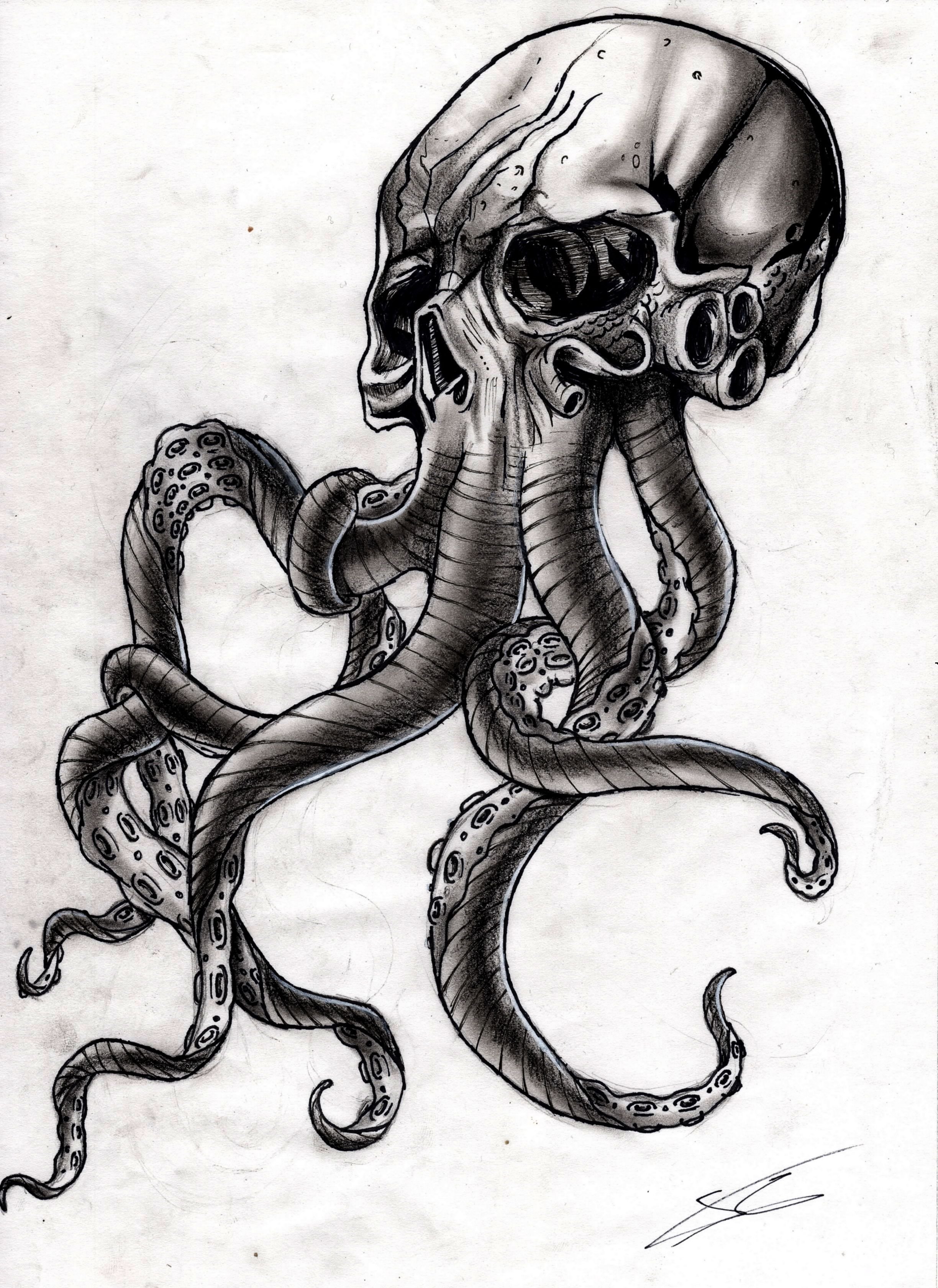 ![Осьминог с черепом эскиз тату]()