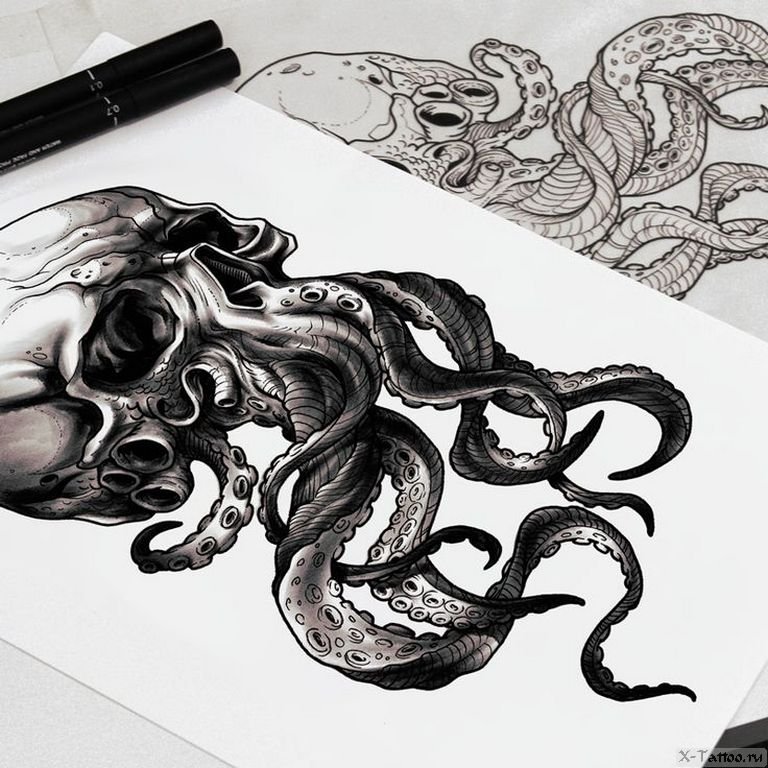 Осьминог с черепом эскиз тату