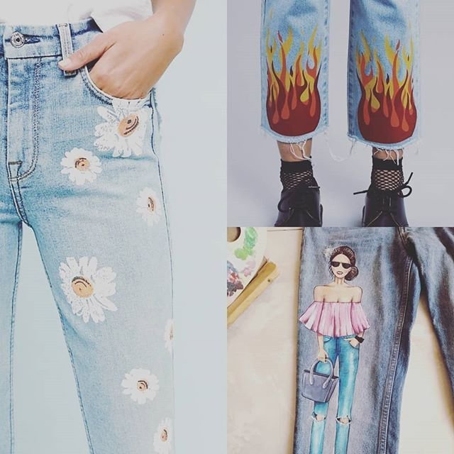 ![Разукрашенные джинсы]()