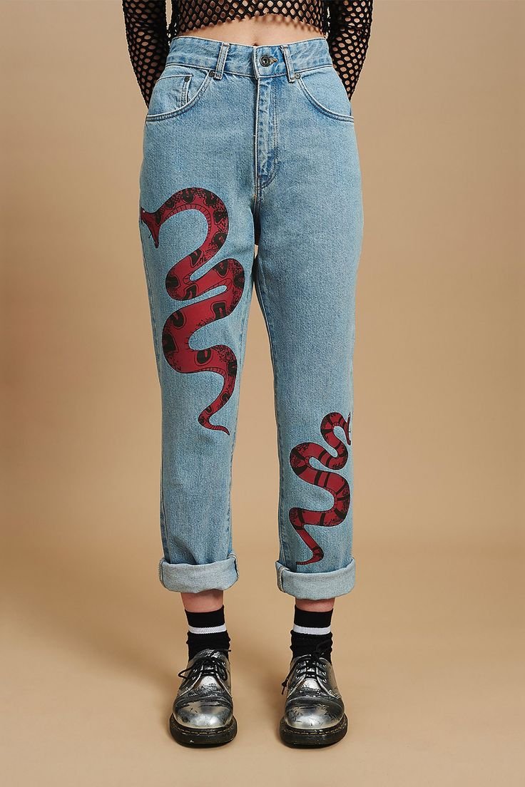 ![Джинсы в стиле поп арт]()