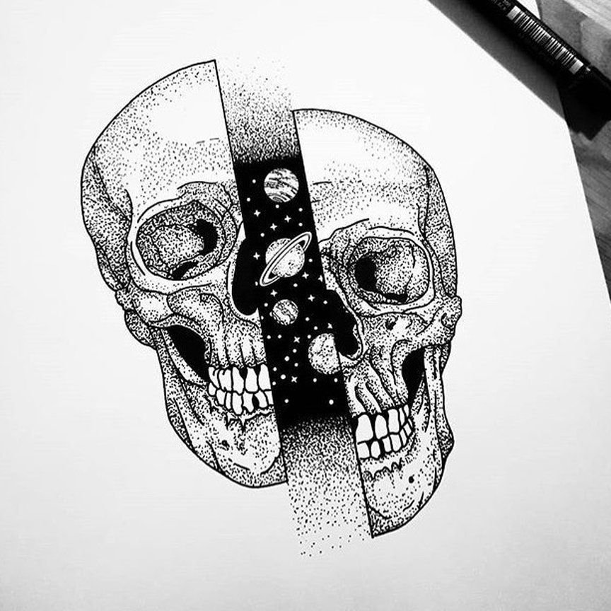 ![Череп тату эскиз]()