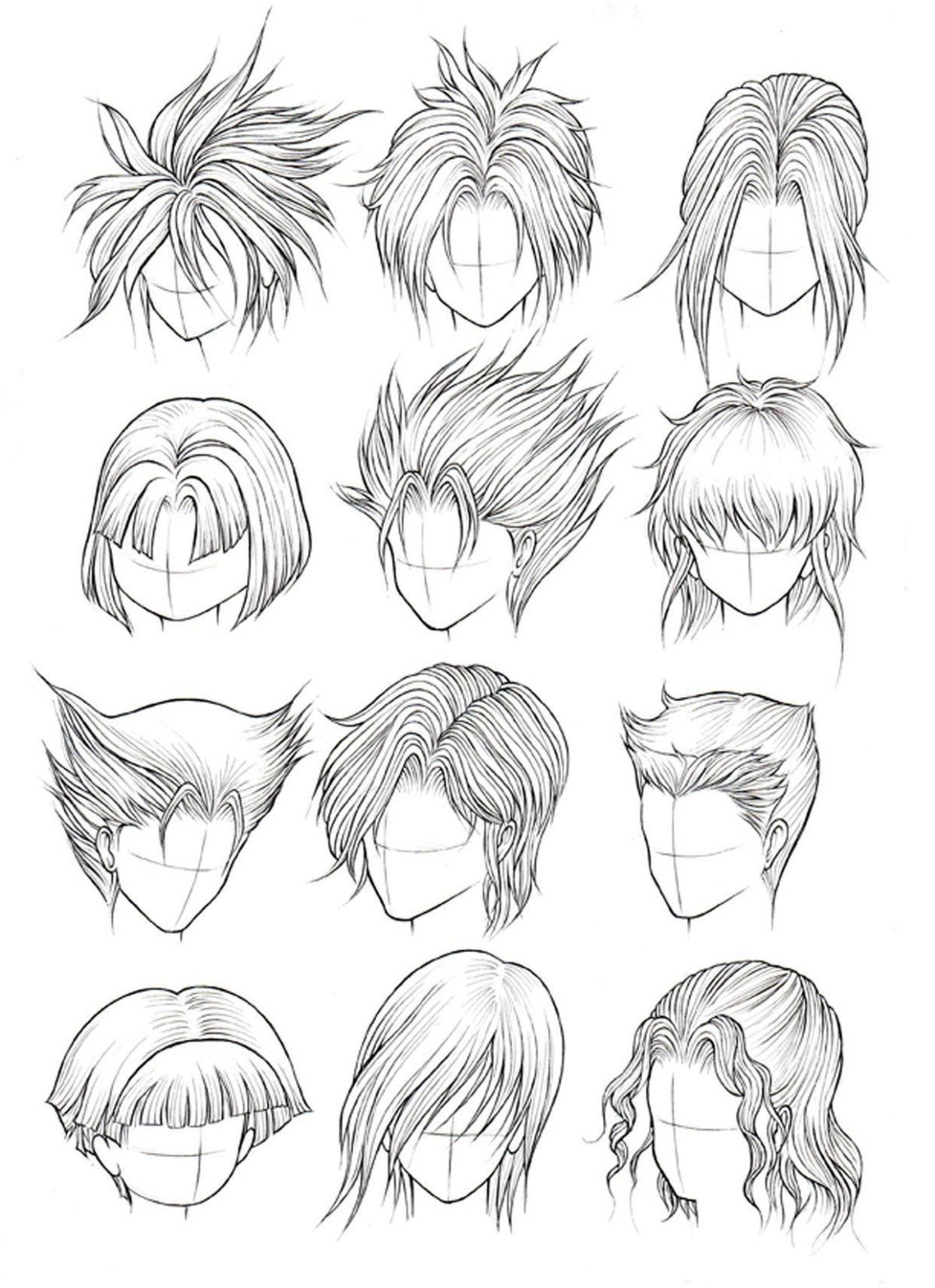 Зарисовки причесок аниме