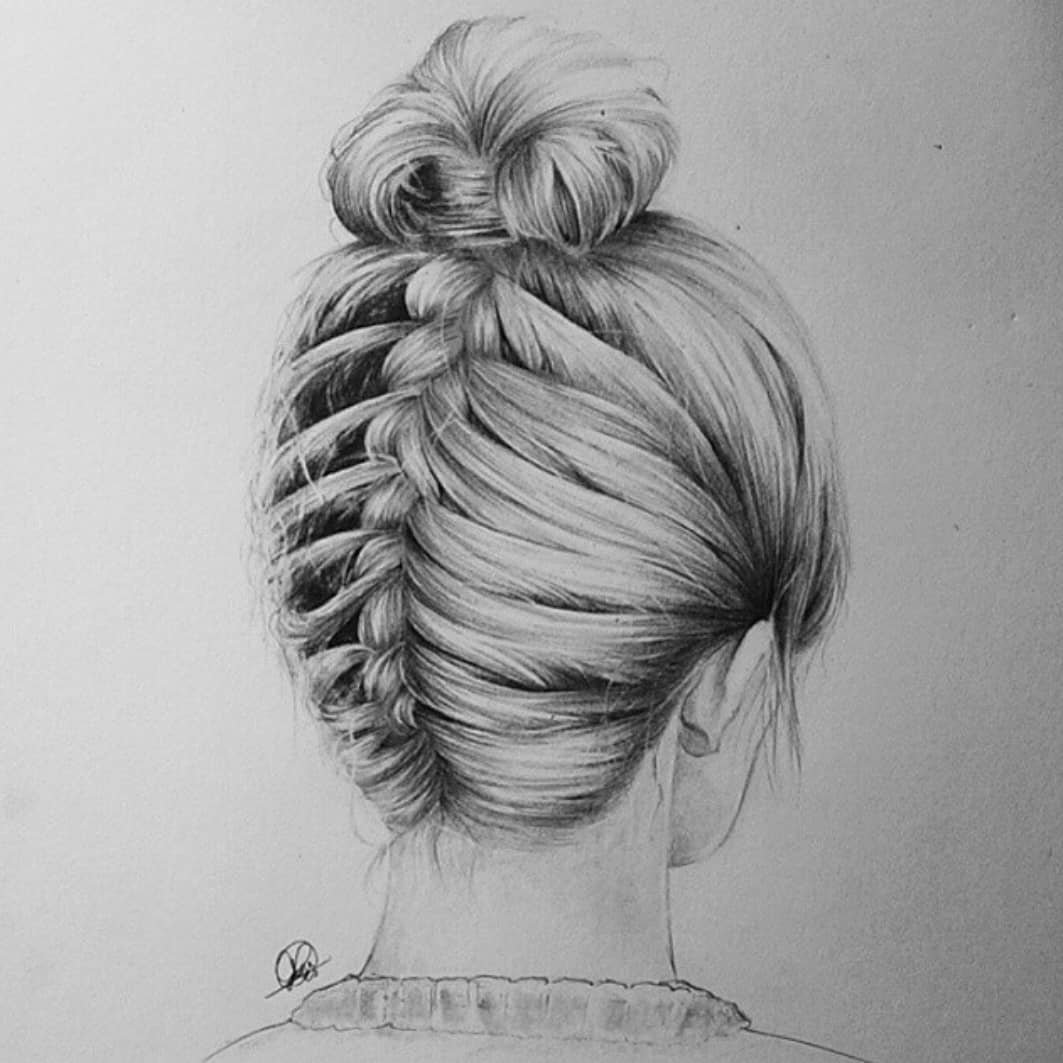 ![Прическа шишка зарисовка]()