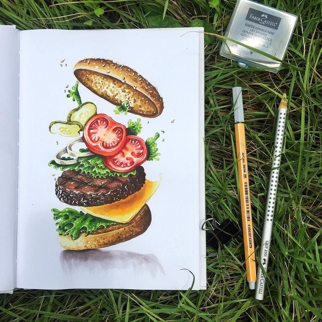 ![Скетчинг маркерами еда]()