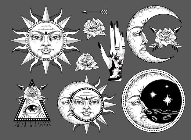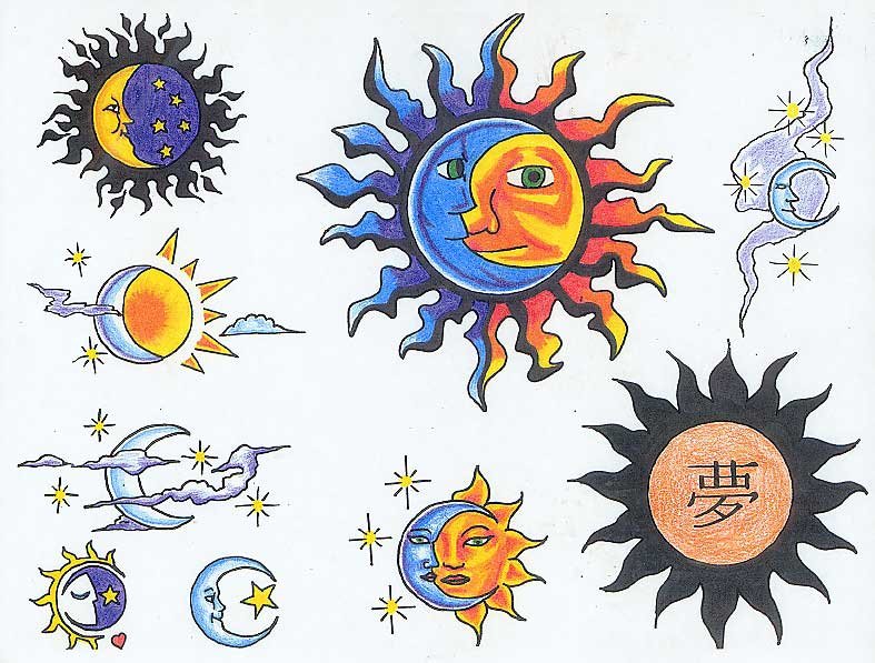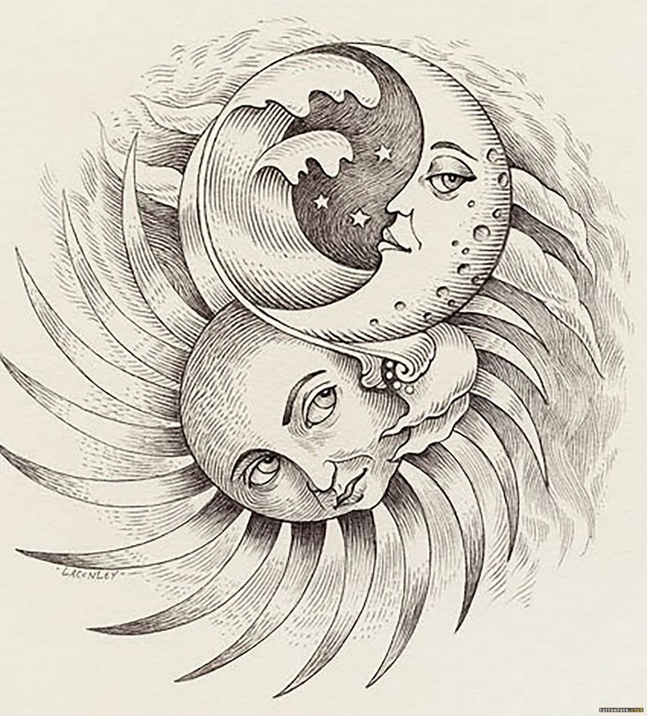Татуировка солнце и Луна эскизы