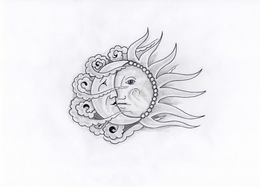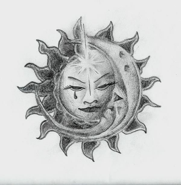 Эскизы татуировок карандашом солнце и Луна