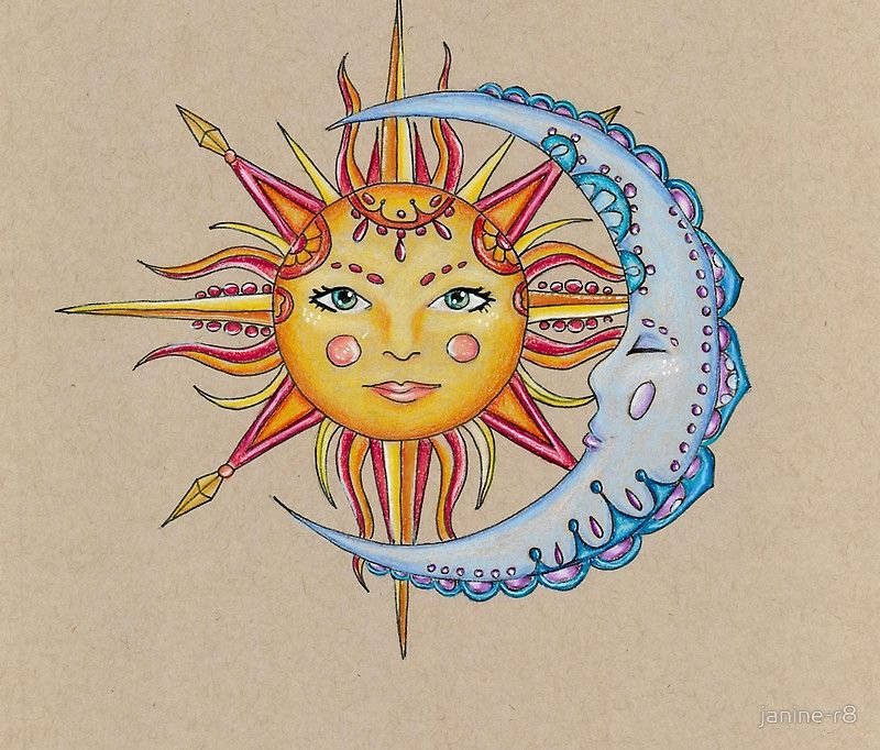 ![Изображение Луна и солнце цветной эскиз]()