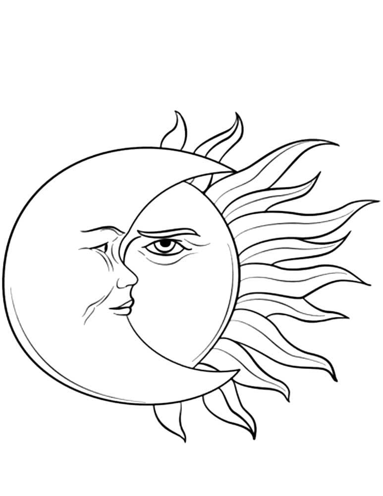 Солнце и Луна раскраска для детей