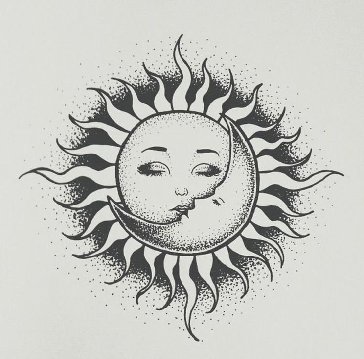 ![Тату солнце и Луна эскиз]()