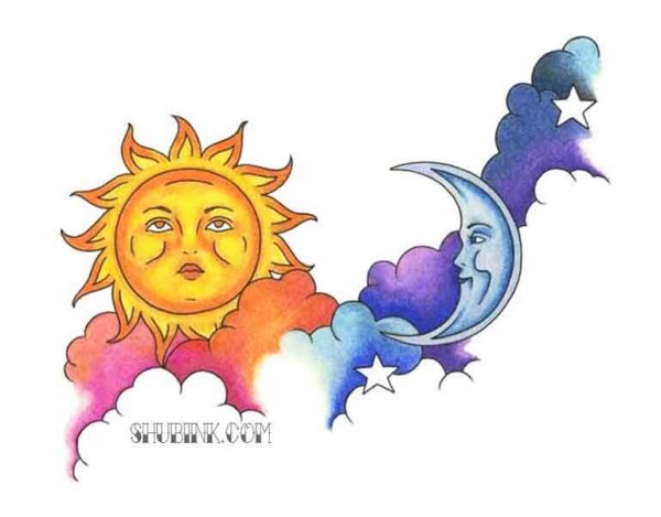 Изображение Луна и солнце цветной эскиз