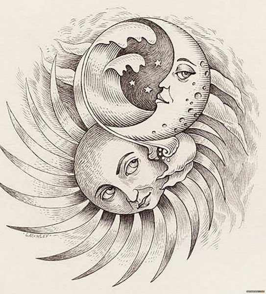 ![Татуировка солнце и Луна эскизы]()