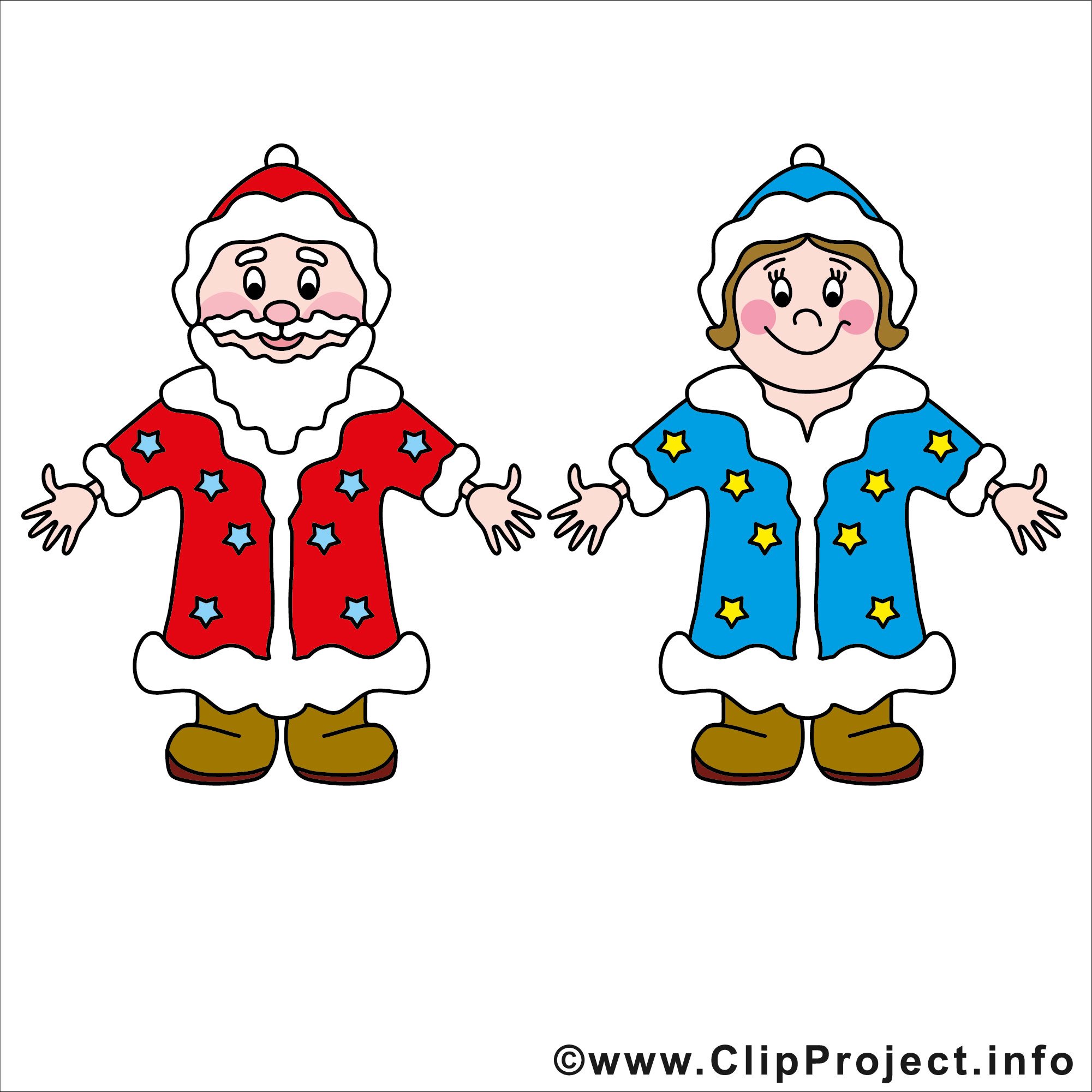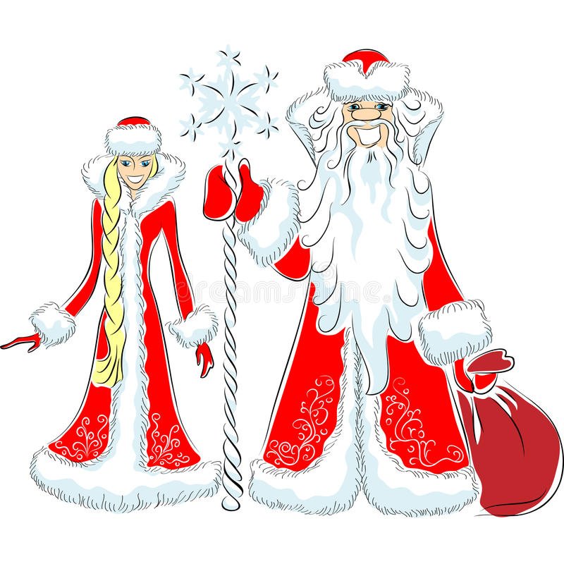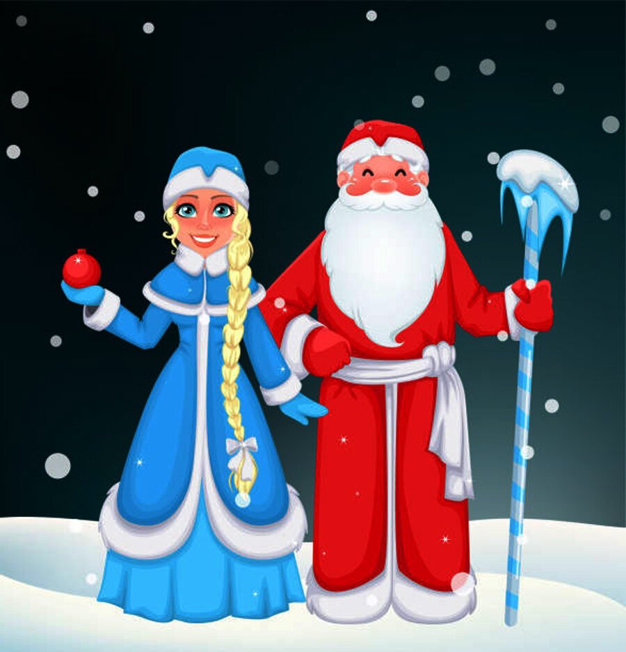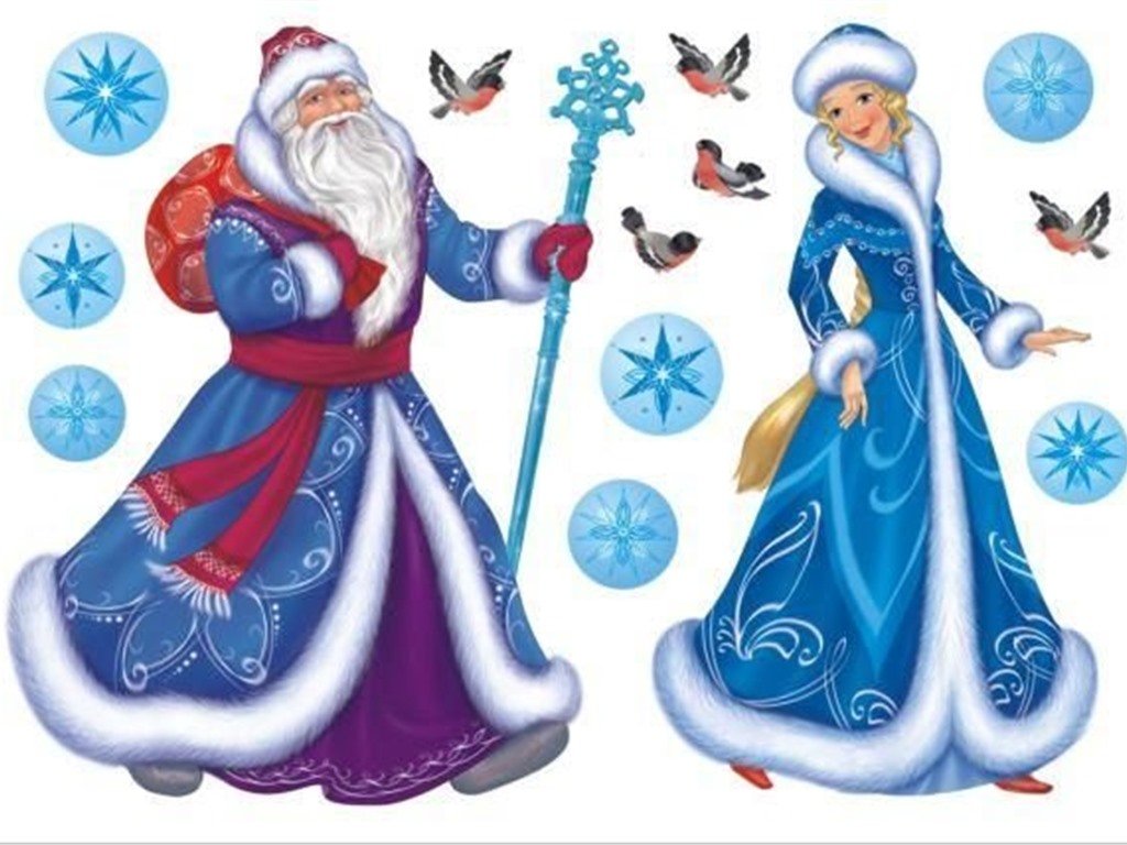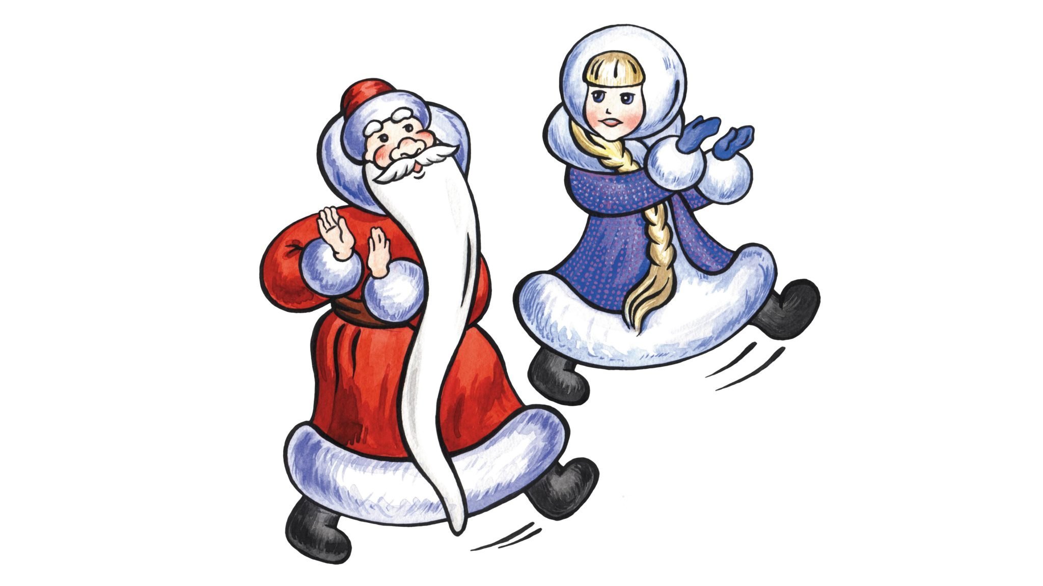 ![Мультяшные фигурки Деда Мороза и Снегурочки]()