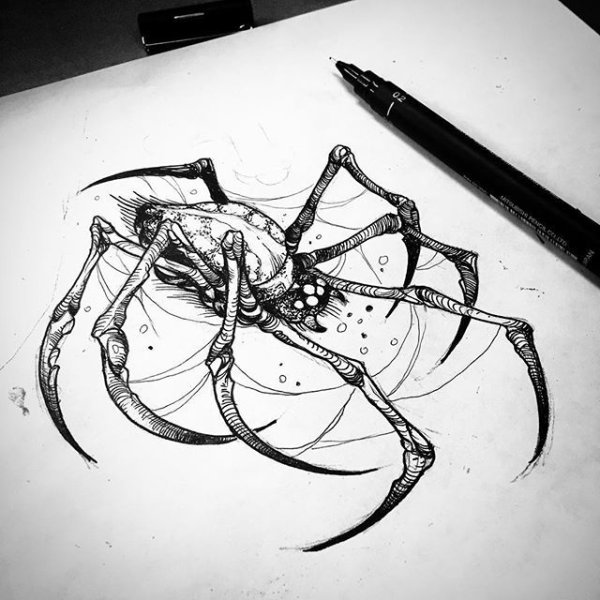 ![Паук набросок карандашом]()