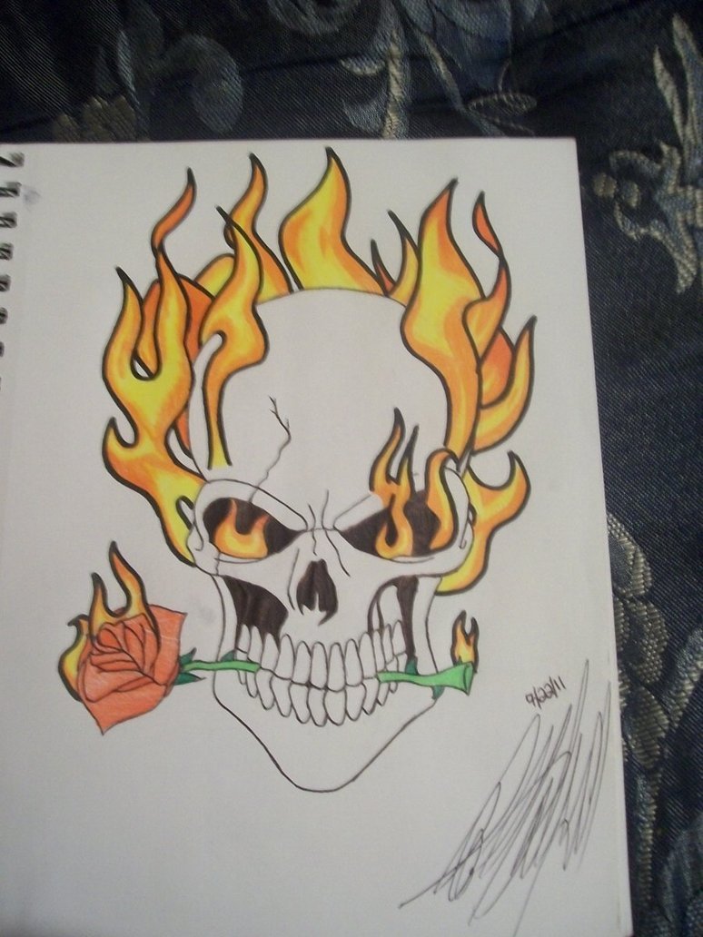![Рисунки карандашом черепа в огне]()