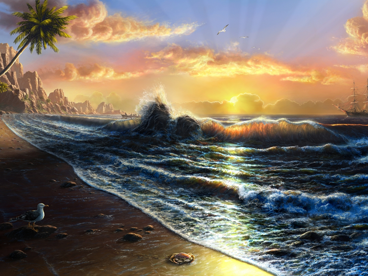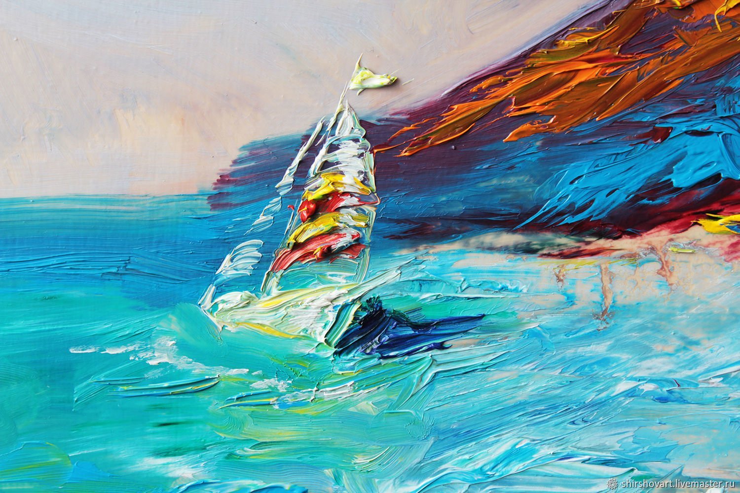 Восхитительный рисунок, полный жизни и динамики, позволит вам окунуться в атмосферу бескрайнего морского простора. Он оживает благодаря своей яркой и контрастной цветовой гамме, которая передает всю красоту и мощь природы. Каждая капля воды на картине, каждая волна и каждый перелив солнечных лучей создают неповторимую атмосферу, словно вы находитесь на самом берегу моря. Смотря на этот рисунок, вы можете почувствовать прохладный бриз, услышать шум прибоя и насладиться незабываемыми видами заката над горизонтом. Это творческое произведение идеально подойдет для оформления интерьера вашего дома или офиса, добавляя в него нотку свежести и свободы. Разместите эту картину на стене, и вы сможете каждый день наслаждаться видом моря, мгновенно переносясь на песчаный пляж и забывая о повседневных заботах.