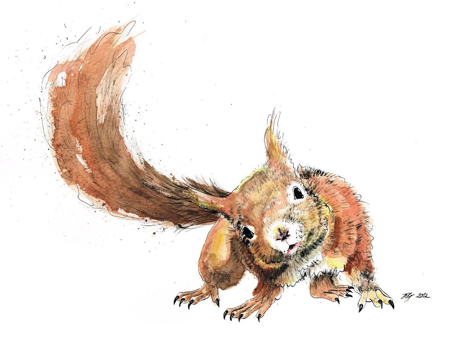 Белка акварелью