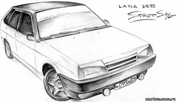 ВАЗ 2108 рисунок карандашом спереди спереди